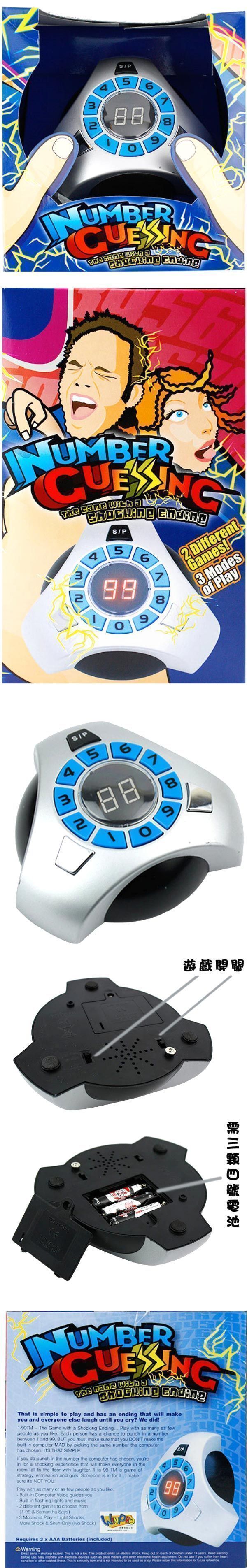 (1)猜數字遊戲:在1到99之間產生一個神秘的數字, 一大群朋友可以一起試一試運氣,每人都可以輸入一個數字,每輸入一次, 就離這個神秘的數字走進一步,總有一個倒楣的人恰好輸入了這個神秘的數字, 然後就發出被電擊的尖叫聲。 (2)數字記憶遊戲:隨著數字序列越來越長,看看你的記憶力究竟有多厲害。 記憶力不好的人可要小心喲,當你輸入錯誤的時候,等待你的就是電擊。 ※可設定大電, 小電 或 沒電只是燈光效果 當我們試玩時大家都非常緊張,因為怕被電嘛!但大家又要怕又要玩, 沒被電先興奮,沒到自己時就一直高呼不同號碼給意見,希望他人中招; 但到自己時就開始猶豫不決,久久未能作出決定, 大家遊走在成功過關或者被電的刺激感當中,齊齊高呼過癮。 不要以為機仔細細就小看了其電量,如果調較電流強度為大電, 包保中獎者嚇一大跳。 (不附上電池) 商品尺寸:16.5*17.5*11.5cm 包裝尺寸:17.5*11.5*18cm